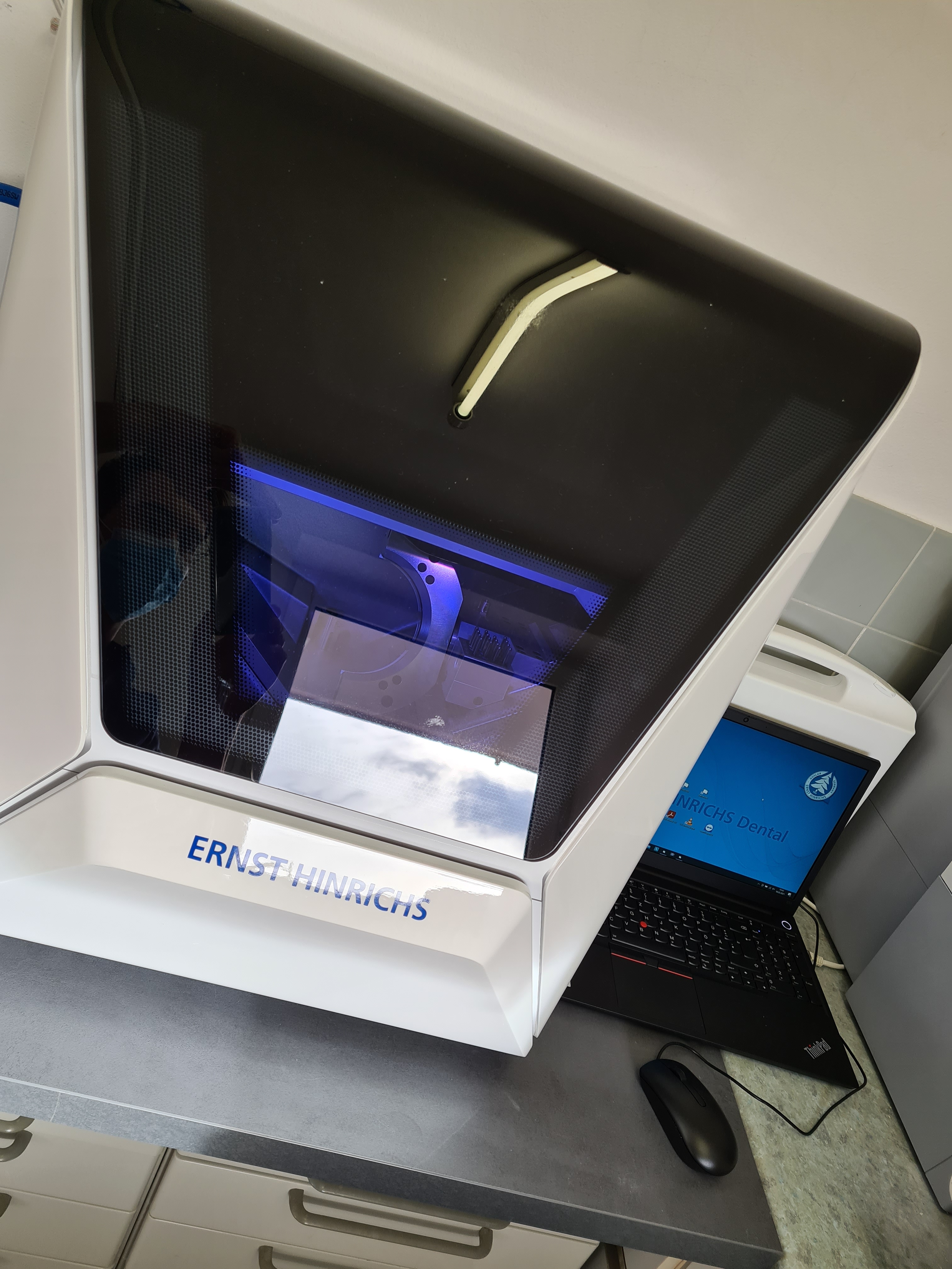 Laborarbeiten können bei uns direkt im Eigenlabor der Praxis angefertigt werden. Hierzu zählen beispielsweise Schienen, Kronen, Brücken, Prothesen und Reparaturen. Nach Möglichkeit geschieht dies mithilfe eines optischen Scans der Zähne. Dieser Datensatz dient dazu, eine virtuelle 3-D-Konstruktion ihrer individuellen Situation zu erhalten. Dadurch kann der Zahnersatz an unserer modernen, hochpräzisen 5-Achs-Fräsmaschine ausgeschliffen werden. Anschließend wird dem Zahnersatz per Handarbeit der letzte „schliff“ verpasst…